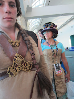 For San Diego Comic-Con David went as Anakin, and I went as Padme (see the Anakin tutorial here). David looks kinda like Hayden Christensen, and I am 7 months pregnant, so it was the perfect costume.